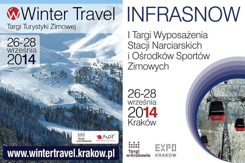 W dniach 26-28 września 2014 odbędą się I Targi Turystyki Zimowej WINTER TRAVEL oraz I Targi Wyposażenia Stacji Narciarskich i Ośrodków Sportów Zimowych INFRASNOW. Wydarzenia organizowane są we współpracy z Małopolską Organizacją Turystyczną.